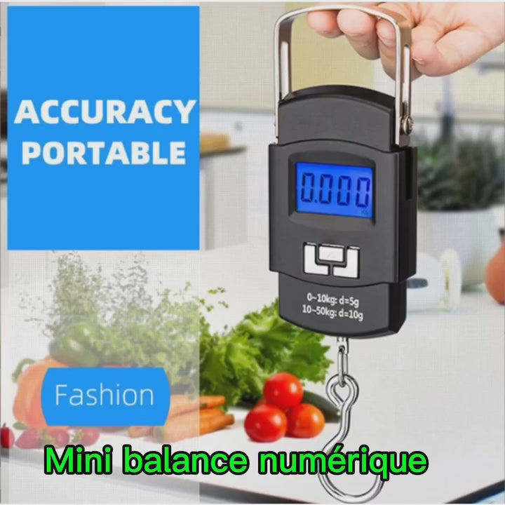 ميزان إلكتروني محمول مثالي لوزن الأغراض حتى 50 كغ. مع شاشة LCD لقراءة واضحة وواجهة بسيطة للاستخدام، يمكنك استخدامه لوزن الأمتعة، الأسماك، والطرود، والمزيد.